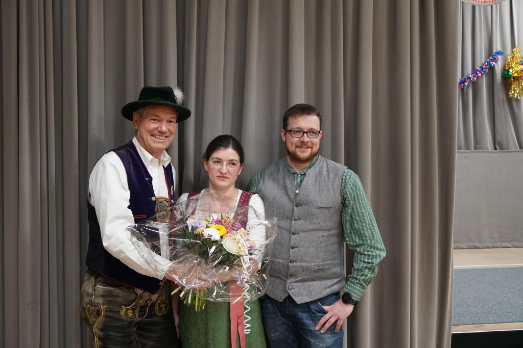 In den Hafen der Ehe ist unsere Jugendleiterin Regina Fischer jetzt Regina Lohr Ende Januar eingelaufen. Unser Vorstand Hans Huber gratulierte Regina und Ihrem Mann Michael im Namen der Deandl und Buam und überreichte einen Blumenstrauß.