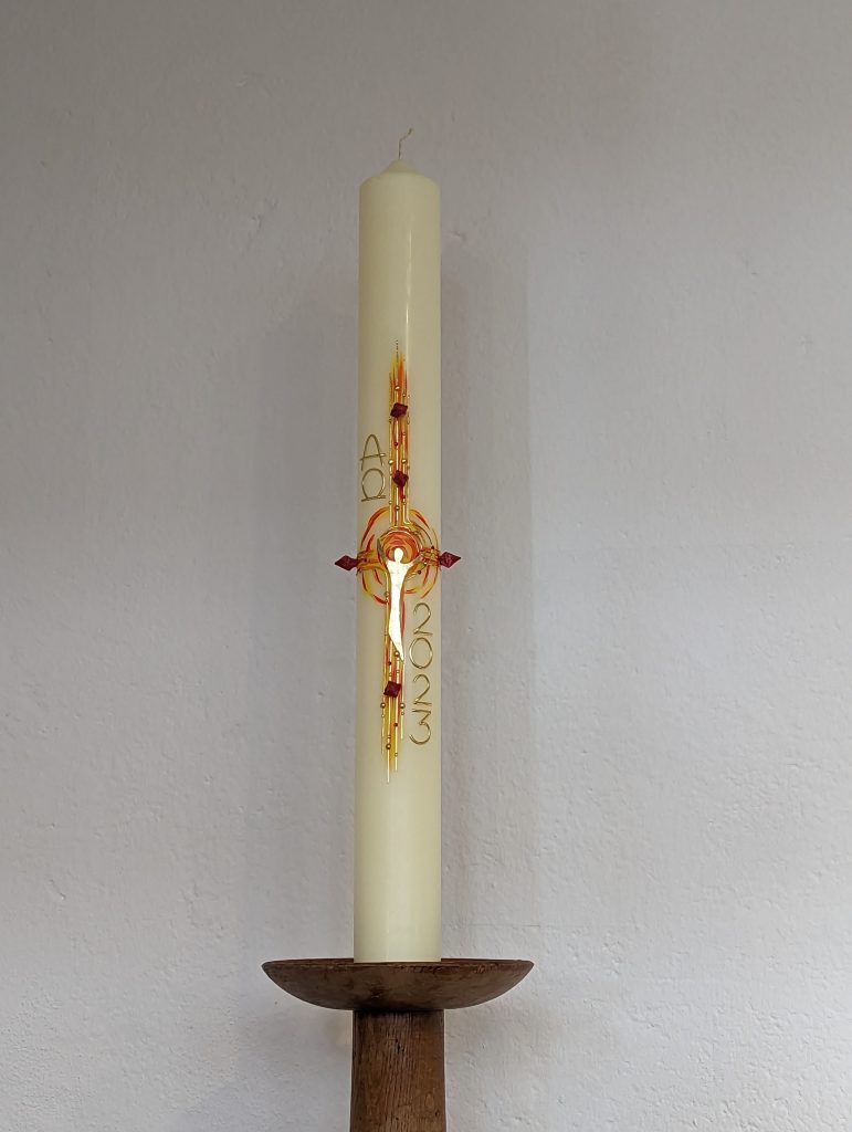 In der Osternacht brachte Sie mit dem Ruf: „Lumen Christi“, das Licht in die Kirche und die Herzen der Gemeinde. Sie wird 1 Jahr das Zeichen für Leben und Tod, für Licht, Freude und Frieden sein und zu freudigen und traurigen Ereignissen brennen. Sie soll auch als Zeichen für die Verbundenheit und Freundschaft zu unserem Vereinsgeistlichen stehen.